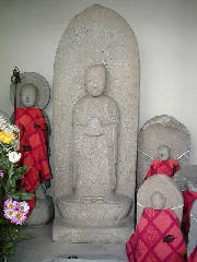 (石仏) 第69体は、地蔵堂の中央にある大きな地蔵です。両手に宝珠を持っている、地蔵菩薩の立像です。台石はありますが、扉の左下に塗り込められています。正面だけの文字が読めます。この石仏は、享保14年(1729)に建立されたものです。