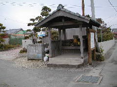 (場所) 住所は、玉名郡長洲町上沖洲になります。国道501号線を岱明町から長洲町に入ります。交叉点にカメラ店と学習塾がある所から左折して、上沖洲に入ります。この道は600mほど直進すると、名石神社の鳥居前に出ます。そこで神社の鳥居から左折して、さらに300mほど直進したところにお堂があります。