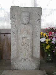 (石仏) 両手に宝珠を持った、地蔵菩薩の立像です。残念なことに仏体の上で光背が折れ、なくなっています。保存はよくありません。石仏全体が、すりへったような印象を受けます。顔の目鼻はありません。この石仏は、享保15年(1730)に建立されたものです。