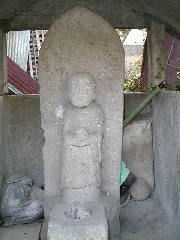 (石仏) 両手におにぎりのような宝珠を持った、地蔵菩薩の立像です。保存もよく、顔立ちもいいようです。しかし、鼻が低いのが気になります。光背の左隅の一部が欠けています。足の部分で、つま先の指は一本ずつ彫られていません。この石仏は、享保15年(1730)に建立されたものです。