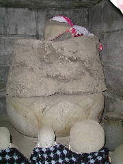 (場所) 熊本市池田1丁目20、松ヶ鼻天満宮の鳥居左です。石垣の上の堂の中にあります。京町の往生院先の手押し信号から左折(西)して、池田天満宮へ行きます。池田天満宮の右側に道路がありますので、道に沿って300mほど行けば、松ヶ鼻天満宮へ到着します。ここには71体もあります。ほかにも小さな地蔵がたくさん奉納されています。