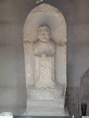 (石仏) 一般的な地蔵菩薩の立像です。首の部分で折れ、補修してあります。顔の部分はかなり傷んでおり、鼻など欠けています。両手で宝珠を持っています。この石仏は、享保16年(1731)に建立されたものです。