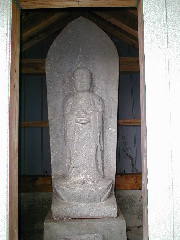 (石仏) 地蔵菩薩の立像です。両手に宝珠を持っています。お堂は新しいものですが、入口が狭いのでのぞきこみました。保存状態はよく、傷んでいません。この石仏は、享保16年(1731)に建立されたものです。