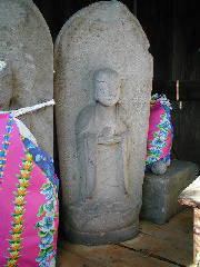 (備考) 堂の中に4体、堂の外に2体あります。堂の中の一番左が無番号第3体、左から二番目が無番号第2体、中央の一番高くて台石に乗っているのが第79体です。その右に4体ほどいろんな地蔵がありますが、右側に並んだ地蔵では一番大きなものが第13体となります。堂の外に2体ありますが、右側の十一観音像が無番号第4体、左側の阿弥陀が第9体となります。平成13年12月30日に訪問しました。二度目になりますが、近くの方の許可も取り、安心して撮影できました。