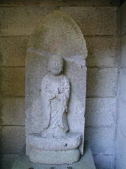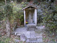 (場所) 住所は、島崎7丁目になります。加藤清正を祀る本妙寺の側を通り、金峰山に向かいます。あと1kmほどで峠の茶屋というあたりで、きれいに整備された公園があります。ここには夏目漱石の句碑もあり、休憩できるようになっています。県道左側にはバス停があって、「鎌研坂」(かまとぎざか)となっています。舗装していない道が下から続いて、坂の終点になっていますが、この坂が鎌研坂です。石仏は公園の奥の小さな堂に安置されています。