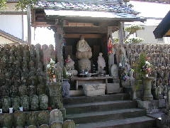(備考) 平成13年9月24日に訪問しました。実は平成11年8月に、一度訪れています。まだ放牛石仏のことは知らず、数多くの地蔵に驚いたことを記憶しています。この地蔵の台石には、「先祖供養」とか「水子供養」とか書かれています。明空上人が悪疫退散を祈り、千日間托鉢をしながらの浄財で、一日一体の地蔵を造っています。また蓮台寺には京からやってきた歌人・桧垣の墓もあります。