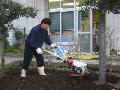 最初簡単に考えていましたが、一週間で終る作業ではありませんし、一人でできるわけでもありません。このとき、教頭先生と主事の先生の二人が活躍しました。教頭先生はツツジの移植に励みました。主事の先生は、耕しとふるいかけです。花株処理をしてくれた三年生にも感謝しています。