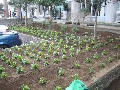 中心となる花壇の場所は、職員室前と会議室前です。このほかにもプロムナードと中庭があります。花と笑顔がテーマですから、花壇は美しくなければなりません。現在植えている花壇の花は、早春に咲く花です。卒業式と入学式に、生徒が歩く通路周辺は、花一杯になるでしょう。幸いなことに、本校では花にいたずらをする生徒がいません。5は定植が完了した会議室前の花壇です。6はキンセンカで一杯の中庭です。