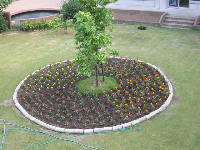 22日(木) 朝から花壇に土を運びました。まだ土が不足していたからです。この後、自宅から運んできた耕耘機で、牛糞と肥料がよく混ぜました。いよいよ花苗の定植です。花壇を四等分して、二種類の花を交互に植えました。女子生徒も手伝ってくれたので、能率よくできました。秋には咲き誇るはずですから、見事な花壇になると思います。