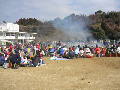 17日(土) 7時から犬の散歩を一時間する。その後、こまの写真などを撮影する。9時過ぎに、自宅から山北小学校へトラックで行く。どんどやがあるので、やぐらを立てる応援である。みかんの剪定枝を運び、上へ上へと乗せていく作業をする。何とか11時には、児童の手で点火ができた。しばらく燃えさかるのを見学したり、保護者とおしゃべりをする。保護者は温かく迎えてくれ、老人クラブは懐かしがってくれた。竹の先でもちを焼いたりせず、ここは昔から家族総出のバーベキュー大会である。三年前に初めてこの風景を見たとき、大変感動したものである。