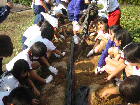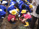 04日(火) 早めの出勤である。午前中は机に向かい、事務処理をする。午後2時に1年生がイモほりをしたので、しばらく見学をする。イモ畑の一部を収穫し、11日の試食会に利用する。山北小学校へモミガラをもらいに行く。前もって頼んでいたので、ビニ袋に10袋分をトラックに積む。夜はPTA役員会あり。