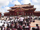 11日(木) 修学旅行3日目。6時半起床、洗面、朝食。8時20分予定より早くバスに乗り込み、首里城目指して出発。10時半には到着して、早速見学。守礼の門を通過して、いよいよ首里城へ入る。高校の修学旅行も多く、学級単位の記念写真は順番待ちであった。