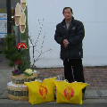 07日(金) 4時起床して、ホームページ作成と写真の加工する。散歩して出勤。トラックから木材を下ろし、倉庫へ運ぶ。完成した得点板を、テニス部にプレゼント。今日もこま回しのボランティアをするので、10時に花園小児童育成クラブへ向かう。こまの演技をしたら、大いに喜んでくれた。保育園とは反応が違う。子ども用にこまを持っていたので、外でも一緒に遊んだ。しばらくしたら数人が肥後こまを回せるようになる。記念写真もとって、11時学校へ戻る。写真の整理や、来客の応対。その後始業式の話を考える。帰宅途中に散髪する。長く伸びていたのを刈上げてもらったので、首周辺がスウスウする。