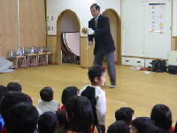 06日(木) 急いで出勤し、工作の続きをする。設計図などはないので、適当な作品である。9時半になったので、こまセットを持って横手保育園へ行く。かわいい園児の前で、30分間ほどこま回しをする。70人ほどの園児がいて、緊張した。今年最初のこま回しであった。11時に学校へ帰り、工作の続きをする。裏側にはプラ板を入れるケースを取り付けたりしたので、結構時間がかかる。本体も完成したので、青のペンキを塗る。L型金具を取り付け、得点を下げてみる。どうにか完成した。満足感にあふれ、帰宅する。またもや近所の建設現場に行き、木材をもらう。