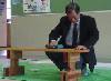 18日(金) トラックで出勤。倉庫のガラクタをトラックに積む。畑で処分する予定である。S先生が「福井杯」について相談する。学校が落ち着き、ボーリング大会を計画している。学校評議員に関する提出書類を作成する。10時に保護者が来校し、転校手続きの相談があった。H先生の新車が届き、皆で見学する。数学の資料作成。卒業式にお世話になった場所へ、教頭先生とお礼参りにでかける。学校へ戻り、ベンチ作成の続きをする。今度はドリルの充電不足で中断。夜は北部B地区PTA総会に出席する。会場でちょんかけごまをしてみせる。