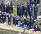 13日(水) なぜか4時に起床。ホームページを作成したり、愛犬の散歩。7時20分に学校に着き、新聞や図書のリサイクルを大量に出す。この時期、学校はどこも同じかもしれない。ファイルを作成し、プリントの整理をする。暇なので草取り30分。10時になったので、着替えて校庭に出る。運動場東側の石垣の草を、草刈り機でなぎ倒す。2時間かけて何とか終了する。広い運動場は、東・北・西の三方向に草が生えている。12時に早めの昼食を取り、学級生徒の写真撮影を見学する。一年生は撮影後に、鯉の放流をしなければならない。1時になったので、新入生116名は川に下り、バケツの鯉を皿ですくって井芹川に放流。毎年の行事で、井芹校区さわやか推進協議会が行っている。さて、学校へ戻る。2時から体育大会のための職員会議である。