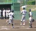 16日(土) 5時起床する。6時半、急いで畑へ出かける。明日が忙しいので、今日がんばることにした。@ハウス内にトマト11株定植。Aゴウヤ11株定植。Bピーマン92株に牛糞施肥。Cジャガの畝を除草して施肥。9時になり、朝食のために帰宅する。朝食後に再び畑へ行く。Dサトイモを一列定植。12時になったので帰宅して着替える。12時半、バイクで運動公園へ急ぐ。野球場で井芹チームの試合を応援する。8:0で勝ったので、保護者とともに喜ぶ。テニスの試合は終わっていた。家に帰り、3時半畑へ行く。Eサトイモを一列定植。計二列となる。タマネギとパセリを収穫して、5時半に帰宅する。よく働いたので、いつもよりビールがうまい。チェリーを連れて、食後の散歩をする。ホームページの作成等をして休む。