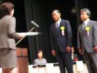 01日(月) 夏休み12日目。4時半に起床して、ホームページの作成と更新をする。7時半に出勤し、テーブルクロスを利用して教室用のスクリーンを作成する。黒板に対して、少し広すぎたようだ。さて今日は、緑化コンクールの表彰ならびに研修会である。総合女性センターは駐車場が狭いということで、川上先生が学校へ迎えにきてくれた。早めに受付を済ませ、表彰式のリハーサルを行う。いよいよ本番。校名を呼ばれ、二人で壇上に上がる。井芹中は「KAB賞」である。このときテレビカメラを持つスタッフが、壇上で私たちを撮影した。表彰の後は講演会になり、12時に閉会。外は雨。学校へ帰る途中、レストランで昼食をとる。