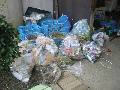 16日(火) 夏休み27日目。6時に起床して犬小屋を見ると、マットが破られている。愛犬ちぇりーには、私のやさしい気持ちが伝わらない。散歩の途中で説教するが、よそを向いている。畑でナスの収穫をして、出勤する。ナスを洗って、先生方10人に配る。自宅から持ち込んだオリヅルランの苗を、ビニポットに移植する。これは昇降口に飾るためである。ガラクタや枯れ草が一箇所で散乱しているので、大きなビニ袋に整理をする。傘はひもで結び、ペットボトルと空き缶は袋に入れる。この作業もすぐにできると思っていたら、結局一時間はかかった。最近出勤している先生が少なく、今日も一人で弁当の昼食である。退屈したので草刈りをするため、トラックで運動場へ出る。一時間ほど草を刈ったところで、機械の故障。どうにもならず、作業を中断する。帰宅途中ナフコに寄り、板を2枚購入する。