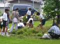 28日(日) 夏休み39日目。今日は井芹中の「親子ふれあい作業」がある。6時に起きて、急いで出勤する。小雨状態であったが、7時には保護者と生徒が100人ほど集まる。作業の中心は、花壇の草取りである。私は草刈り機を用いて、運動場北側の草を刈る。1時間半ほどの作業が終わり、校庭はすっかり美しくなった。9時には帰宅して、朝食を取る。