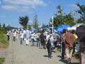 1時を過ぎたので、パソコンやプロジェクターを積んで、附属中学校へ出かける。10人ほどの参加者があり、研修の一つで私が一時間ほど話をする。井芹のすばらしい点を先に話し、次に平成15年度の厳しかった現実を話した。参考になったかどうか、不明である。5時に帰宅。コマのセットを持ち、花園1町内の地蔵祭へ駆けつける。私の出番は三番目で、こま回しである。昨年よりも見物人が多く、大変にぎやかであった。後片付けの後は、盛大なバーベキューとなった。12時に閉会となり、タクシーで帰る。