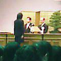 10日(木) 卒業式。4時半起床して、ホームページの確認。出勤して礼服に着替える。いよいよ9時半から卒業式である。50人近い来賓を案内して、体育館へ行く。卒業式は厳粛な雰囲気で進み、感動した女生徒が式辞で泣いていた。11時半に生徒退場。校長室にいたら三年生が来て、一緒に記念撮影を頼まれる。花束もいただく。一時過ぎには卒業生と在校生が帰宅したので、二階へ行って工作をする。体育の先生に頼まれた跳び箱が完成したので、スプレーで色塗りをする。帰宅して散歩。6時半に外出する。