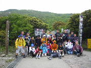 井芹中学校には、井芹中学校さわやか推進協議会があります。この方たちのお世話で、今年も久住山に登ることになりました。平成15年5月24日(土)の午前7時に、大型バス一台に総勢30名、大分に向けて出発しました。二十年ほど前に登山の経験はありましたが、当時の記憶はかすれています。写真は、牧の戸峠の登山口での記念写真です。9時半、いよいよ出発です。
