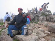 写真では分かりにくいのですが、峠から1時間半歩いた避難小屋です。この小屋からさらに30分かけて、頂上に着きます。登山道の途中に温度計がありましたが、11度でした。山上の気温は、10度以下と思われます。途中何度も休みつつ、もう止めようかと思ったほどです。寒いし、歩きにくいし、しかも脚がおもいのです。しかし、途中で引き返せば、生徒に笑われます。