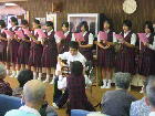 最後の出演は、合唱部です。美しい声で、練習を重ねた曲をいくつも歌います。15曲ほどあったかと思いますが、大半は昔なつかしい文部省唱歌です。生徒たちも話していたように、現在の生徒たちは習っていません。音楽の教科書から、すでに姿を消したものばかりです。しかし、お年寄りの方の反応が次第に変化しました。
