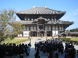 10月31日(金)。修学旅行最終日です。子どもたちは疲れを見せず元気一杯です。朝食後に荷物をまとめ、8時にはホテルを出発しました。一人だけ熱を出した生徒がいましたが、昨日より元気になりました。9時前には奈良公園に到着し、まずは記念写真です。現地専門のガイドさんに案内され、東大寺の見学になります。巨大な大仏さんを仰ぎ見て、生徒も驚いています。公園には鹿が多く、生徒も喜んでいます。途中若草山前のお店でトイレ休憩と、買い物の時間になりました。