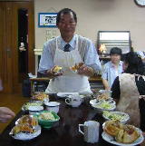 家庭教育学級に参加して、11日にはパン作りに挑戦しました。20数名のお母さん方に囲まれて、楽しいパン作りとなりました。この日作ったのは、フロランタン・たこ焼きパン・二層ゼリーの三種類でした。私も小麦粉をこねましたが、皆さん心配そうに見ていました。イーストで膨れるパンを見て、正直びっくりしました。おしゃべりタイムの会食で、パンを三個も食べました。ちなみに、フロランタンというお菓子は私が一番すきな食べ物です。 |
