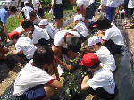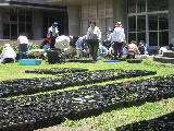 | 生活委員会の皆様を中心とした花苗の移植作業が、6月6日(日)に行われました。早めに学校へ行き、土作りをしておきました。10時には30人程の方が集合し、全員で育苗箱の小さな苗を黒のビニポットに移植しました。この作業は、中腰で大変疲れます。12時半に終了しましたが、188ケースが中庭に並びました。約5000株、金額にして25万円。花壇への定植は7月初旬と考えています。大変ありがとうございました。学校が益々美しくなります。 | ![]() |