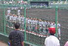 写真は7月13日(水)に行われた「緑化コンクール」の審査風景です。審査員は4人です。限られた40分の時間ですから、ポイントを押さえてアピールしなければなりません。担当の宮永先生が写真を利用して、生徒や保護者、先生方の取り組みを説明していただきました。その後4人で校庭を案内しながら、花壇と樹木を見てもらいました。結果が楽しみです。何でもいいから、入賞したいと考えています。 |