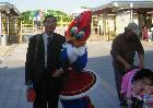 左の写真は、USJでの一こまです。スパイダーマンも生徒と並び、映画を堪能しました。ここの施設では、最も充実しているようです。レストランの料金が高く、結局ハンバーガーになりました。右の写真は、本能寺の織田信長公の廟です。説明書きの中に、森欄丸の名前を発見しました。私に似ているとか。 | ![]() |