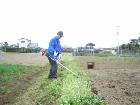 | 畑での農作業は、順調に春の準備ができています。写真は、あぜ道での草刈りです。この後腰が痛くなり、整形外科へ出かけました。エンドウの支柱も立て、ネットも張りました。 | ![]() |