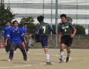 教職員サッカー大会が、3月5日(日)井芹中で開催されました。今回の試合では、白石先生と教頭先生が大変張り切っていました。白石先生のロングシュートが決まったときは、サッカー部の生徒もびっくりしたと思います。第一試合は五和東中と対戦し、7対5で初戦突破。第二試合は御船中と対戦し、8対4で負けました。ボールをけっても空振りが多かったのは、他人のシューズを使ったからでしょう。差し入れの豚汁とおにぎりが最高でした。 |