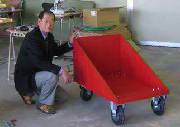 祭の専門店で、ハッピを購入しました。こま回しの出演用です。松下教頭先生の話では、こま回しは日本の伝統文化だから、それなりの服装でないとだめですと。青色の地に「祭」の文字があり、4000円でした。さて、出番は。 | サッカー部のために、ボール運搬車を作製しました。コンパネを利用して、タイヤを四個取り付けました。校庭で使用するので、できるだけ頑丈にしました。先日部員全員が大きな声でお礼を言ってくれました。色は赤。ロッソ井芹のチームカラーです。 | ![]() |