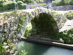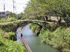 欄干も親柱もない、輪石だけの橋といった感じです。この単一アーチの石橋は天保年間に架けられたものですが、石工はわかりません。橋の長さ12m、幅2.9mの石橋は、保存のために通行禁止となっています。下を流れる川は、氷川大堰用水路になります。もとは200m下流にあったこの橋は移転復元され、宮原町指定文化財になっています。なお橋の名前「郡代御詰所眼鏡橋」については下記の宮原町教育委員会設置の説明書きをご覧ください。 種山の 技術伝えん 橋を架け