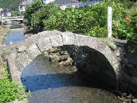 この浜眼鏡橋は、津奈木町指定文化財です。なぜこんな所にと思うような小さな石橋です。丸太を渡しても橋ができる幅ですが、石橋にした理由があるのでしょう。架橋は、嘉永元年(1848)年頃となっています。橋の長さは3.8m、橋の幅は1.7mあります。村と村を結ぶ道といった感じのする橋でした。