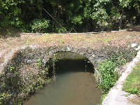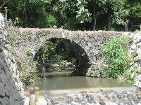 この橋がいつ架けられたのか、誰がかけたのかは不明のようです。単一アーチの石橋で、橋の長さ8m、橋の幅3mと小さなものです。周辺は水田地帯で、川の流れは周囲の田を潤しています。川に沿って下りる道があります。橋の上に立つと、まるで江戸時代に戻ったような気がします。