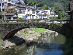 この橋の架橋年代は、大正12年(1923)になりますから、比較的新しいということができます。しかし、交通量が多く、すでに補強されていました。橋の長さ26m、橋の幅5mの大きめの橋です。球磨川の支流の一つ、芋川にかけられていますが、橋の高さを低くするために、半円でなく弧になっています。だからこそ補強する必要があったのかもしれません。