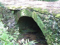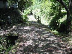 この石橋は文化元年(1804)に、種山石工の祖といわれる藤原林七によって架けられたものです。造られた時期は、鍛冶屋上橋と同じになります。橋の長さ4.3m、幅2.6m、径間2.7m、拱矢1.2mの、ほぼ鍛冶屋上橋と同じ規模になります。この石橋は、小川の流れが曲がっている場所に造られています。鍛冶屋上橋と中橋をはさむようにして、橋本勘五郎はこの近くに二つの石橋を造っています。すでにこの石橋は、200年間の風雪に耐えていることになります。現在も農道として利用されているようですが、東陽村の指定文化財です。