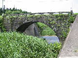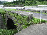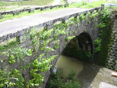 この橋は大正10年(1921)に架けられた、単一アーチの石橋です。県道には新しい橋が造られているので、この橋を渡ることができません。車止めの石がありますが、徒歩で渡ることは可能です。橋の脇に坂がありますので、途中まで降りることができます。長さ12.5m、幅4.5mの石橋ですが、欄干もそのままで風情があります。欄干には請負人や技術員の名前が彫ってあります。