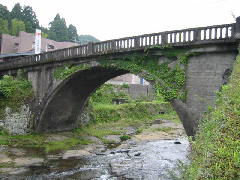 この石橋は、嘉永3年(1850)に架けられたものです。単一アーチの石橋に見えますが、実は大小二連のアーチを持っています。橋の長さ31.0m、橋の幅5.5m、スパン16.4mの造りで、橋の上は平らな構造です。矢部町の指定文化財になっています。下流側はきれいな公園になっていますが、これは御船川石橋公園として、平成10年6月に整備されたものです。