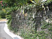 この石垣は、山間地でよく見かける風景です。民家の石垣や畑の石垣も、このような自然石を利用して高く積まれています。河原の石なのか、それとも開墾したときに出てきた石なのかはわかりません。それにしても、熊本城の石垣と同じように美しく並んでいます。