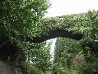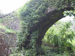 ここを訪れたのは、九月中旬の日曜日でした。足元を見れば、無数のギンナンが落ちています。石橋の近くから下へ降りることができます。長さ47mと長い橋ですが、幅は2mしかありません。国道に近いため、利用する人も少ないようです。高さ8.5mの橋の上からながめる小筵川の景色はすばらしく、清らかな水が流れていました。