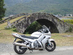 この橋の近くには、楠浦神社があります。以前はこの橋を渡って、宮参りをしたと思われます。しかし、すぐ横には新しい舗装道路がありますから、現在は利用する人もいないでしょう。久しぶりにバイクを橋の前に置き、記念の一枚を残しました。ここは舗装道路にも近く、しかもガードレールがありません。石橋を見るのが目的なのか、それともバイクに乗るのが目的なのか、自問自答が続きます。