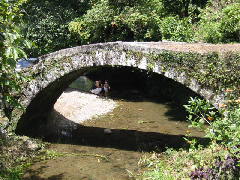 場所 松山橋(まつやまばし)の所在地は、八代郡東陽村大字小浦字重見です。熊本市から国道3号線を南下して宮原町へ行きます。宮原町から国道443号線を利用して、石橋で有名な東陽村へ向かいます。東陽村へ着きましたら、石橋公園で右折したあとすぐに左折して県道155号線を進みます。この道は小浦川に沿って狭く、しかも上り坂が続く道路です。最初に現れるのが松山橋ですが、重見橋(鉄筋の新しい橋)を渡り、案内板を頼りに行けば松山橋に着きます。県道沿いには橋ごとに大きな案内板がありますので、分かりやすくなっています。