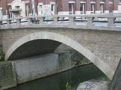 場所 明十橋(めいじゅうばし)の所在地は、熊本市西唐人町にあります。この橋の下流には明八橋があり、互いに橋の上から見ることができます。現在も使用されている石橋で、明治10年に造られましたので、明十橋と名づけられました。この橋は明治10年(1877年)に、石工・橋本勘五郎によって造られた単一アーチの石橋です。橋の長さ22.7m、橋の幅7.9m、径間15.8mとなっています。