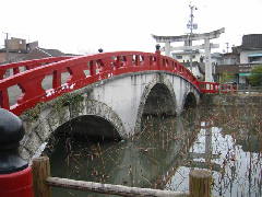 場所 禊橋(みそぎばし)の所在地は、人吉市上青井町にあります。人吉駅の南側に、大きな青井阿蘇神社がありますが、その鳥居前です。写真でもわかるように、赤い欄干が人目を引きます。